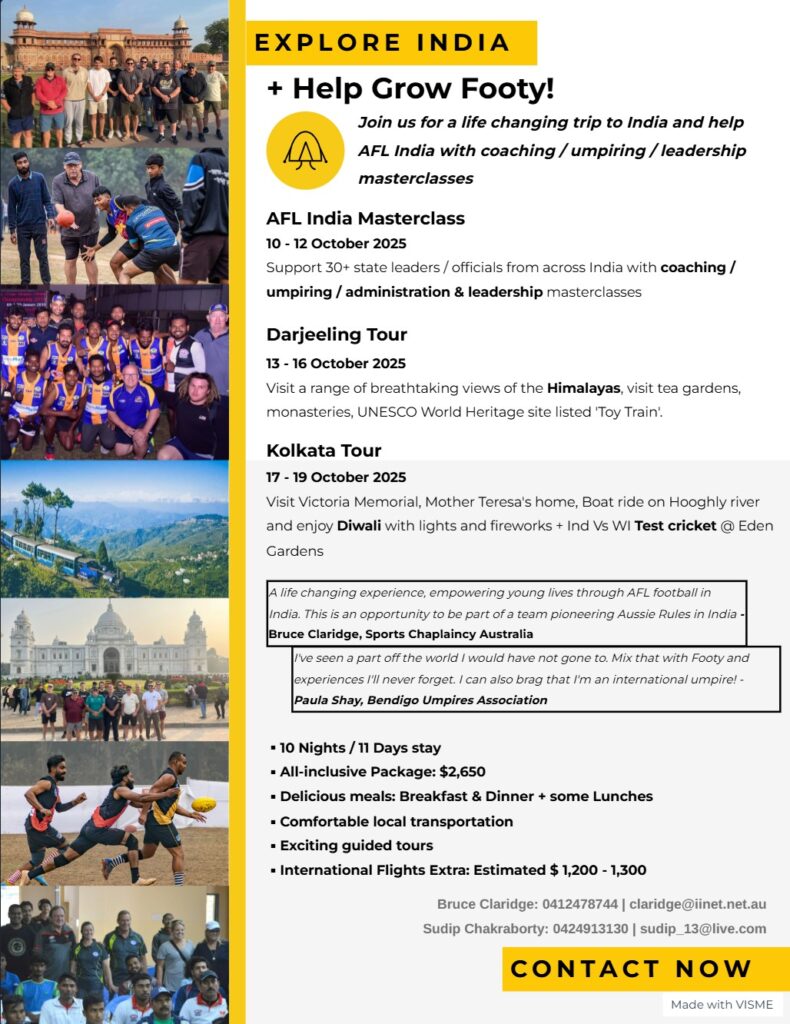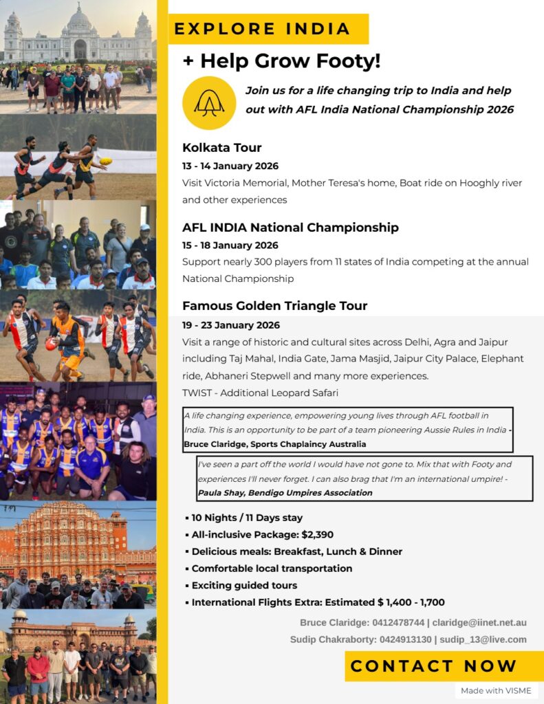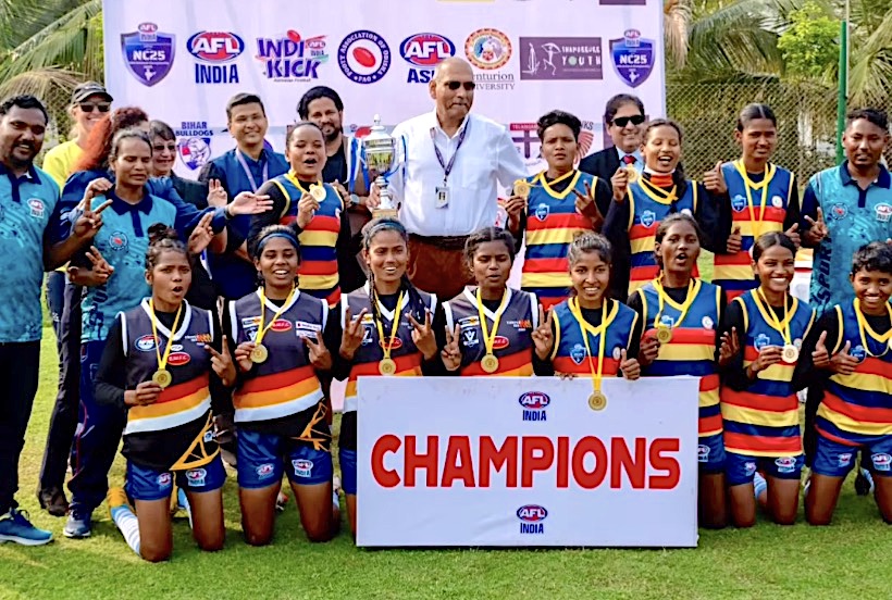 Another significant development at the tournament was the first ever inter-state women’s footy competition, with three states from eastern India competing – Odisha Swans, West Bengal Tigers and the Jharkhand Crows.