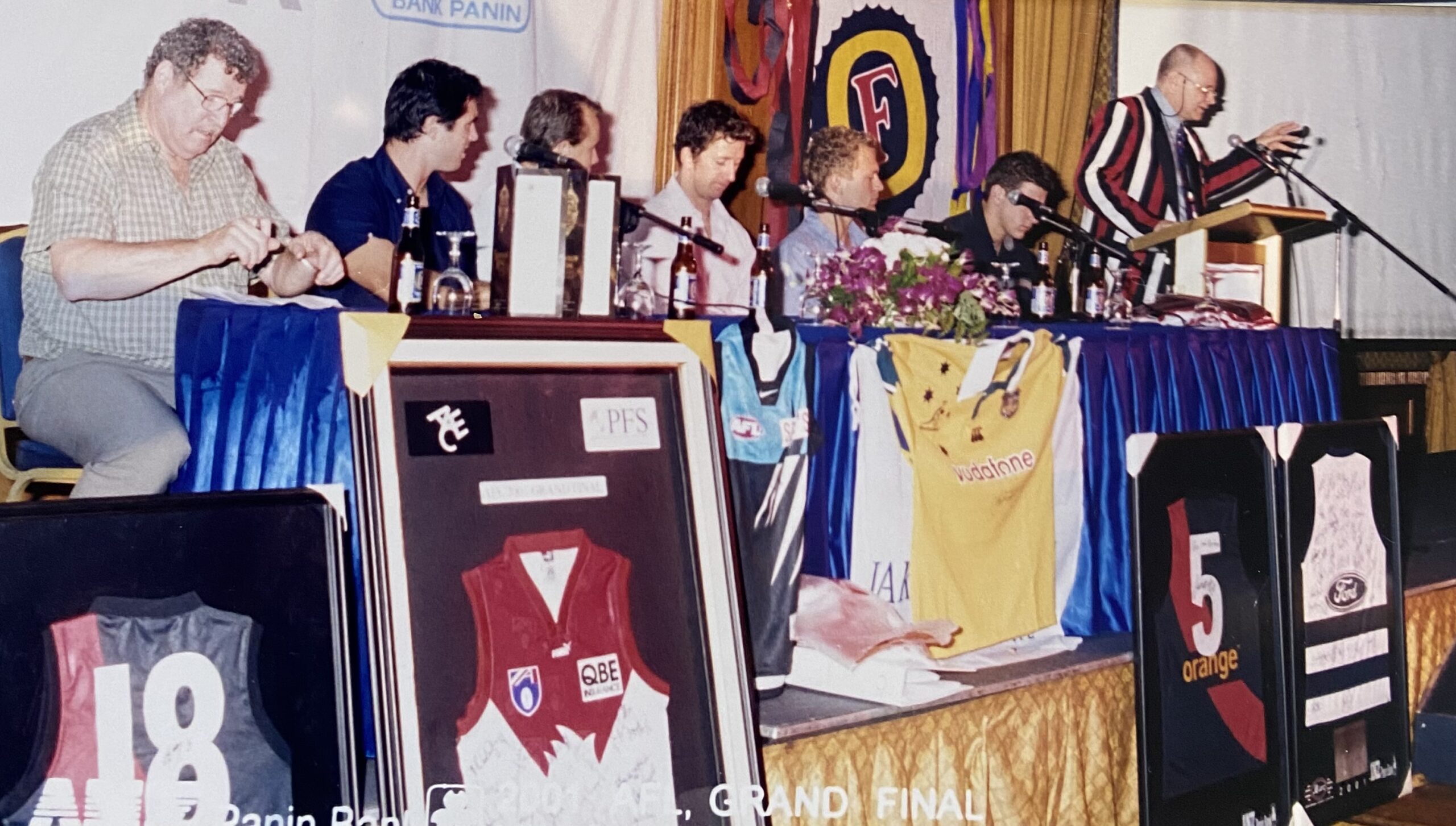 The club found its mojo in 1998 when its foundation committee led by Tim Hakfoort went “chips-in” and moved the AFL Grand Final telecast away from the pubs and into a palatial Jakarta ballroom. Modelled on the North Melbourne panel format breakfast, AFL players and some regional ABC TV hosts were flown up to be greeted by an enthusiastic 400 guests at the sold-out Regent Hotel.